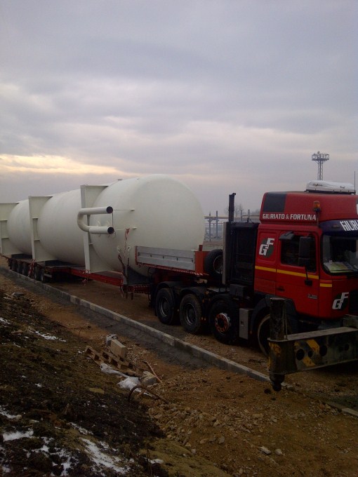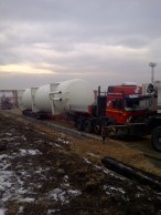 Heavy transport of oversized gas and oil tanks in Bulgaria Dec 2011