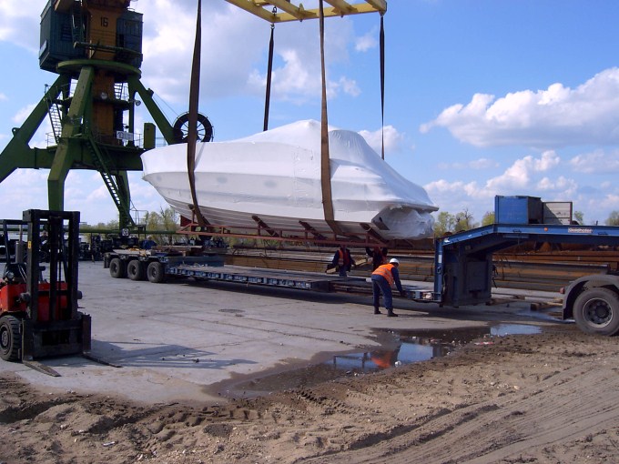 The yacht was loaded in Obrovac, HR, delivered to Port of Vukovar with further transshiped on River vessel to Ruse Port. In Ruse boat was loaded on Bulgarian truck and delivered to successfully to Varna.