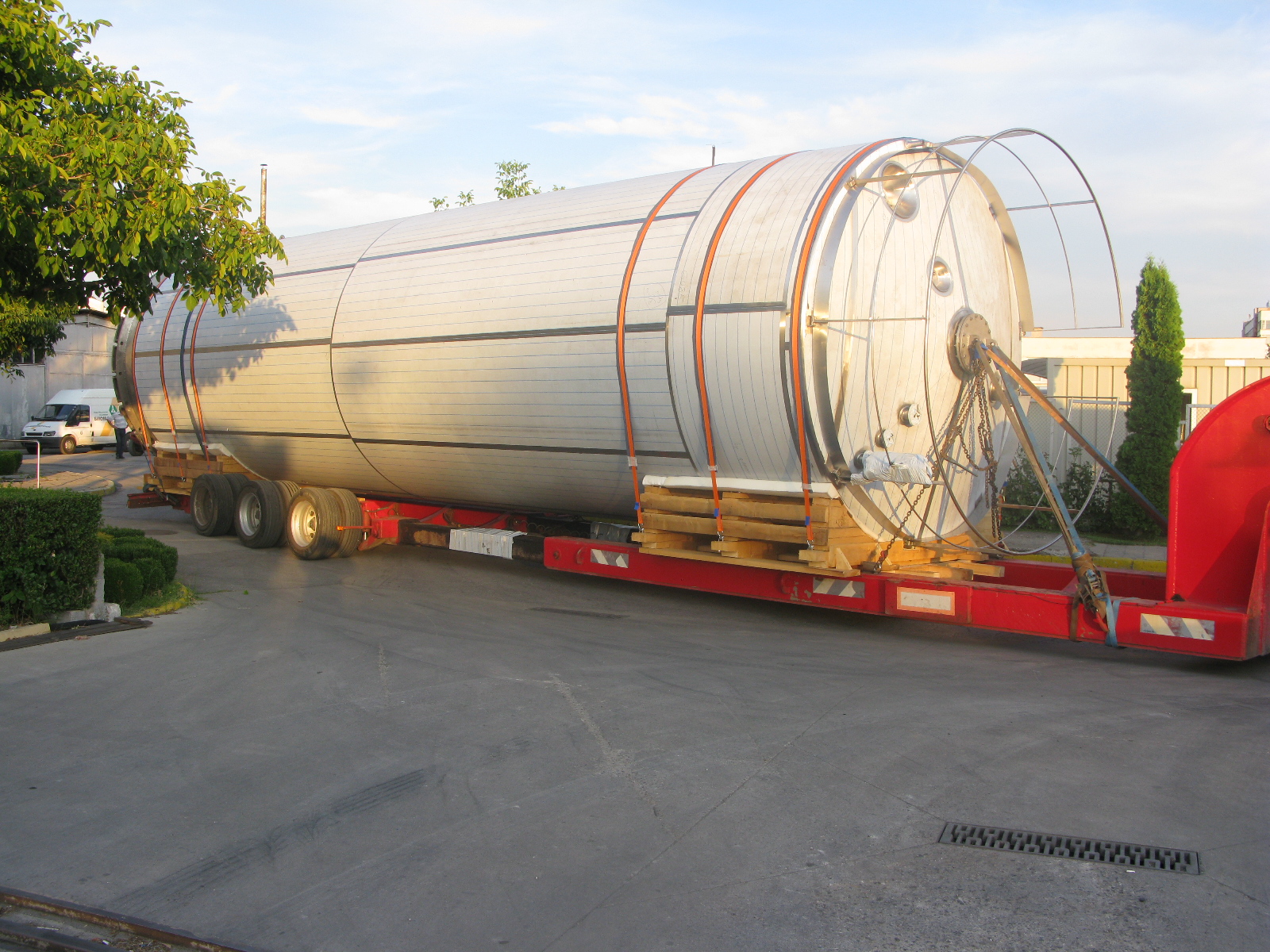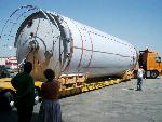 In July 2012 Unishipping International Ltd was contracted for delivery of steel tanks produced in Bulgaria for one of the biggest European chocolate producers and their new factory in Manisa, Turkey. Equipment consisted of 17 units with different volumes. The biggest were 120cbm with max unit dimensions 15.40x4.20x4.32m/18t, total 4 of these units. Due to border height limitation we should use low bed trailers at max 60cm from the ground. As there was tight delivery schedule we used four different low beds for the biggest pieces in order to meet the customers deadline.