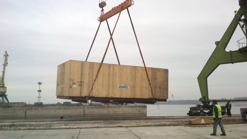 In December 2013 Unishipping International Ltd was nominated by a partner to participate in delivery of equipment for hydroelectric power plant which was with origin Hungary and final destination Turkey. Multimodal transport via Danube river was involved here taking in consideration the parameters of cargo - stator frames with unit dimensions 11.36 x 5.70 x 4.02m / 42.5t, total 4 pieces. Cargo has been delivered by trucks from factory in Hungary to river port Paks, loaded onto river barge to Ruse port in Bulgaria with further reloading in Ruse from barge onto trailers to final destination in Turkey. Unishipping was in charge for all operations in Hungary and Bulgaria. It was a challenging task due to fact that port of Paks in Hungary was the only workable port, but it is situated in the area of nuclear power plant without enough handling capacity for heavy cargo like ours and the only option for transshipment is direct one. Storage of cargo on quay in port and stay of mobile crane is absolutely impossible for more than one-two days. So we had to perform strict organization in order to avoid possible delay and a lot of additional expenses. But even this is not enough when you are dealing with such cargo. During the local trucking in Hungary one of the stator frames was not fixed properly in his wooden crate and has moved aside into the wooden crate and this piece was not anymore suitable for further transport before repairing. Shipper decided to repair the crate using the hired crane in port area but this would take at least 2 days. Due to fact that barge was in convoy and was waiting on quay, we shipped only 3 pieces and start looking for other suitable barge or river vessel which can load the remaining cargo after repairing. Thus, once repaired, cargo was waiting near the port, loaded on heavy trailer, in order to be removed again in port and shipped to Ruse. When a river vessel has been booked, we performed again direct loading from trailer onto ship. Finally all units has been delivered successfully to Ruse port and reloaded on trucks for their final destination in Turkey.