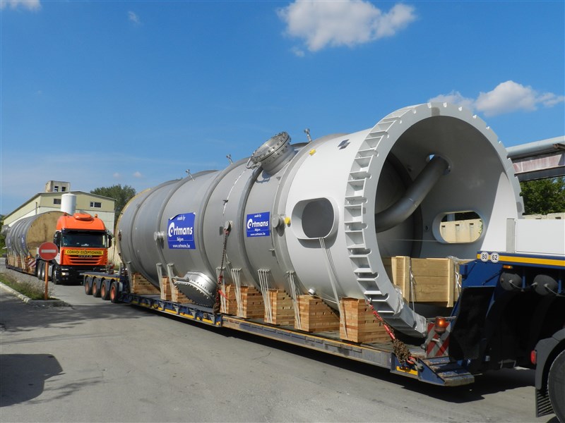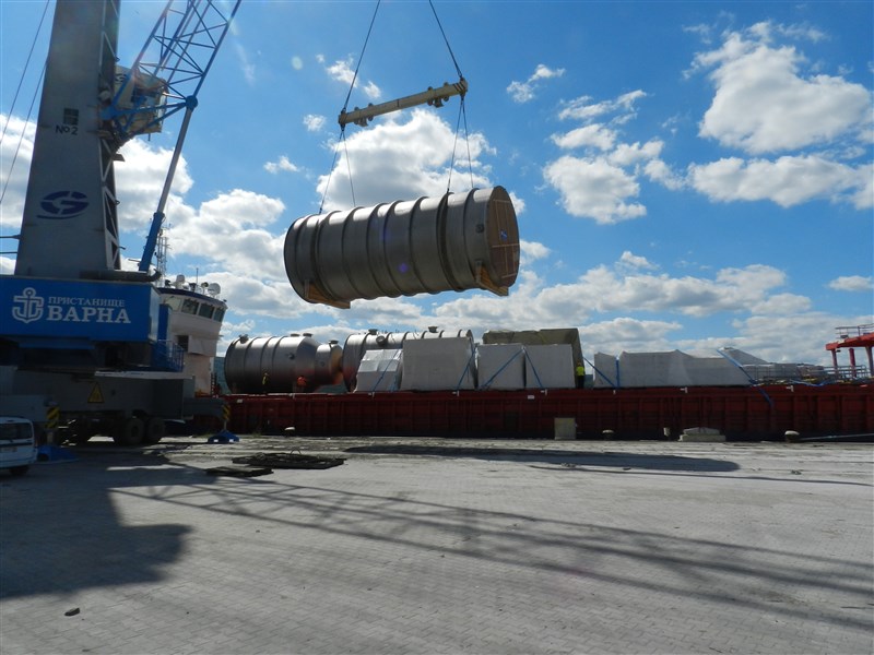 In August and September 2014, Unishipping Intl ltd together with Belgium partner has performed delivery of equipment for the Belgium chemical producer Solvay and its local factory in Bulgaria which is the biggest European facility of the group. Equipment consisted of total 6 tanks, 4 of which with diameter of about 5.50m, max length 12.00m and unit gross weight 25t, delivered by chartered vessel as deck option from Antwerp to Varna. We in partnership with Belgium partner were in charge for all operations in Belgium, including sea freight and all local operations in Bulgaria. Special attention needed to be given to the seaworthy lashing & securing as no sufficient lashing eyes were available on the tanks. The other 2 tanks with diameter about 4.10m, max length 14.42m and unit gross weight 22t, has been loaded on extendable lowbed trailers for direct trucking from Belgium to Bulgaria arranged by Unishipping. Whole equipment has been delivered successfully without any delay and damage.