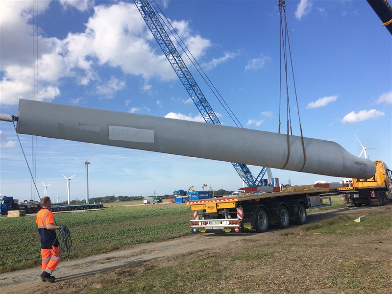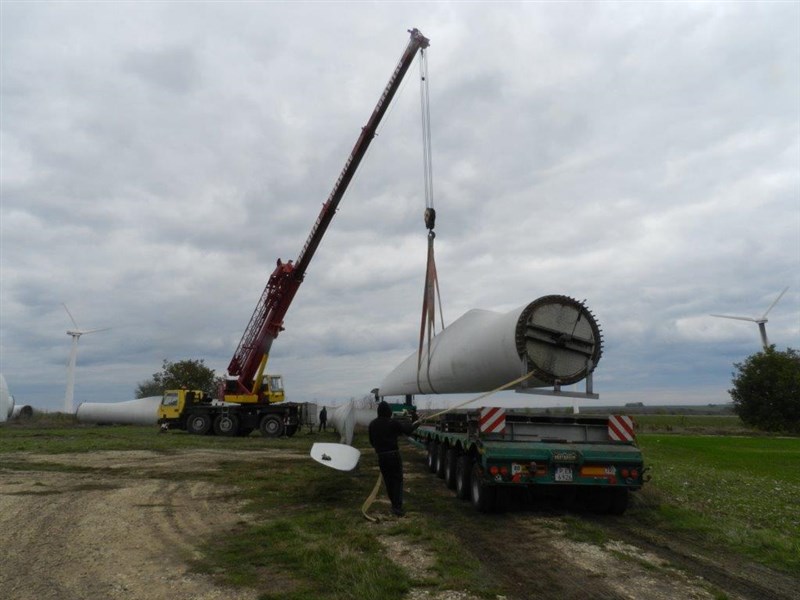 In October 2016, Unishipping International Ltd completed delivery of 1 sets of used wind turbines Nordex M60 from DE-27478 Cuxhaven via Passau and Ruse port to job site in Kavarna area. Total quantity of cargo was 7 pieces /80t/ Largest pieces were blades with length 29.65, diameter 2.90m and weight 4,200 kgs, so as nacelle with dimensions 8.45 / 3.00 / 3.75 m = 48.200 kgs. Unishipping was in charge also for all handling operations in job site.